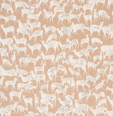 Miniature herds of hand-drawn deer, each with their own personality, give this design unique appeal. It's a charming, figurative alternative to florals and geometrics.