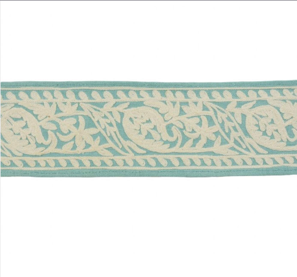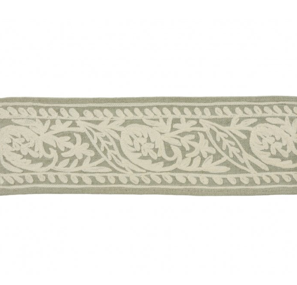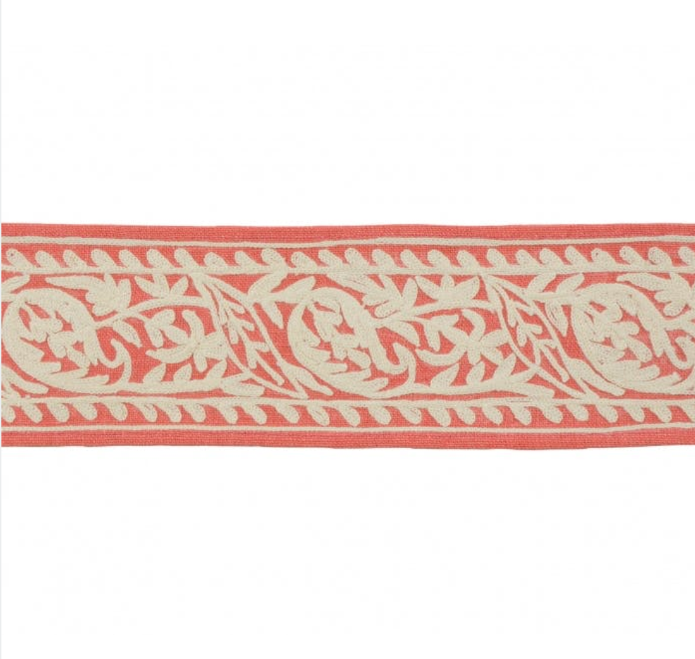 With a winding, embroidered floral design accentuated by French knots, Ashoka Tape adds an...