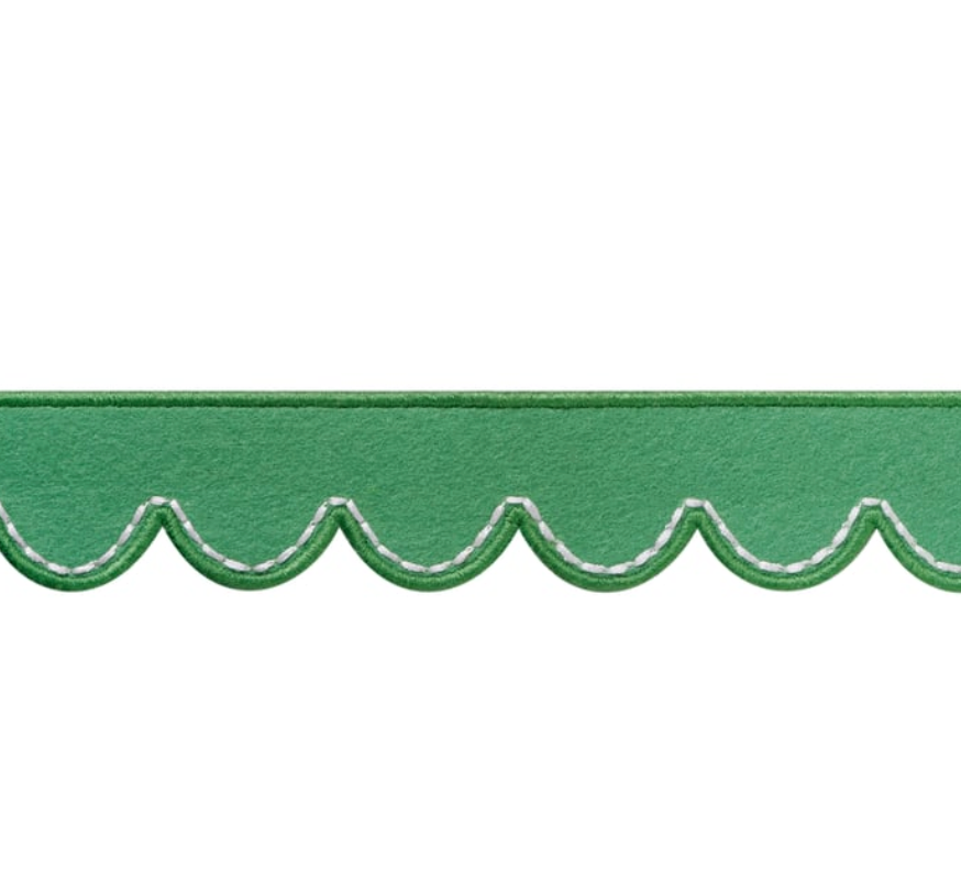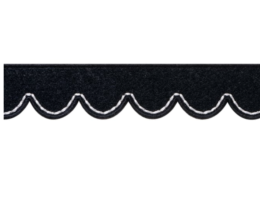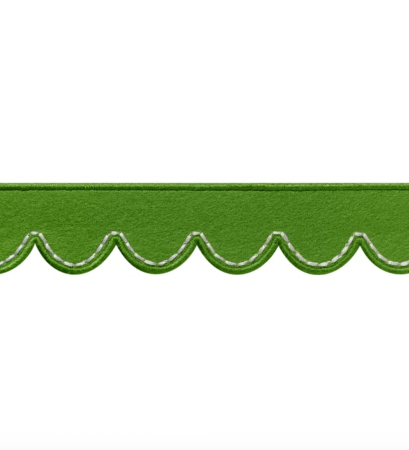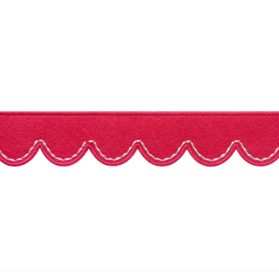 Satin stitched on a linen tape, this twist design has a retro flair. Width- 3.75"...