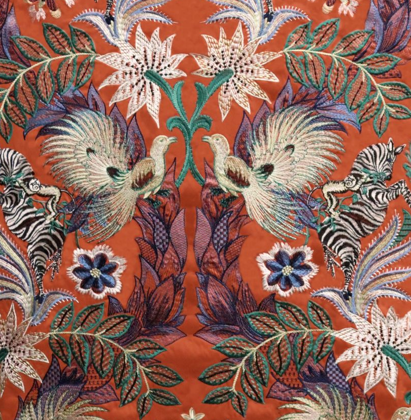 Fun embroidered floral fabric design. Width- 49.2" Repeat- 30.71" Content- Poly Cotton blend. If you...