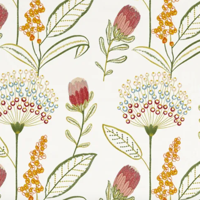Call for price and availability! Pillar Point is a timeless Jacobean style vining floral fabric. ...