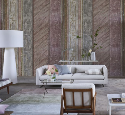 This large scale wallpaper design boasts exquisite detail - layers of texture in luminous color evokes a beautiful imagining of a Venetian frescoed wall. Digitally printed onto a heavyweight non-woven ground for ease of hanging and in plaster like shades. This large scale wallpaper has an alternative scene, which can be used together or alone to stunning effect. This product is sold per panel set on a single roll comprising of 2 x 27.5" wide drops each 118" high. Scene 2 is shown.
