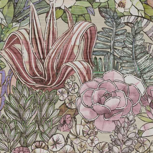 Magical floral design printed on a grasscloth . Width- 34.6' Repeat- V- 39" H- 34.6"...
