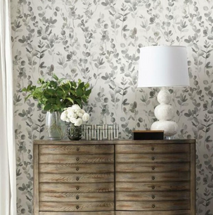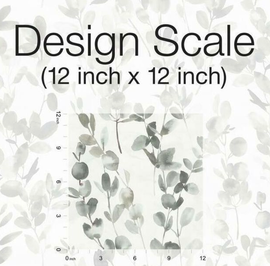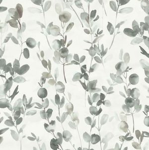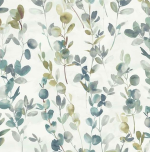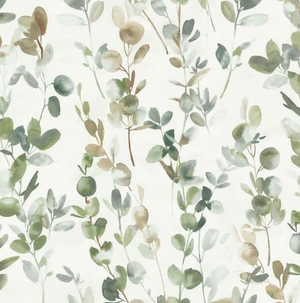 Botanicals spring to life in the fresh, floating sprigs and silver dollar leaves of pattern Joyful Eucalyptus.