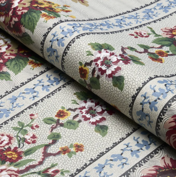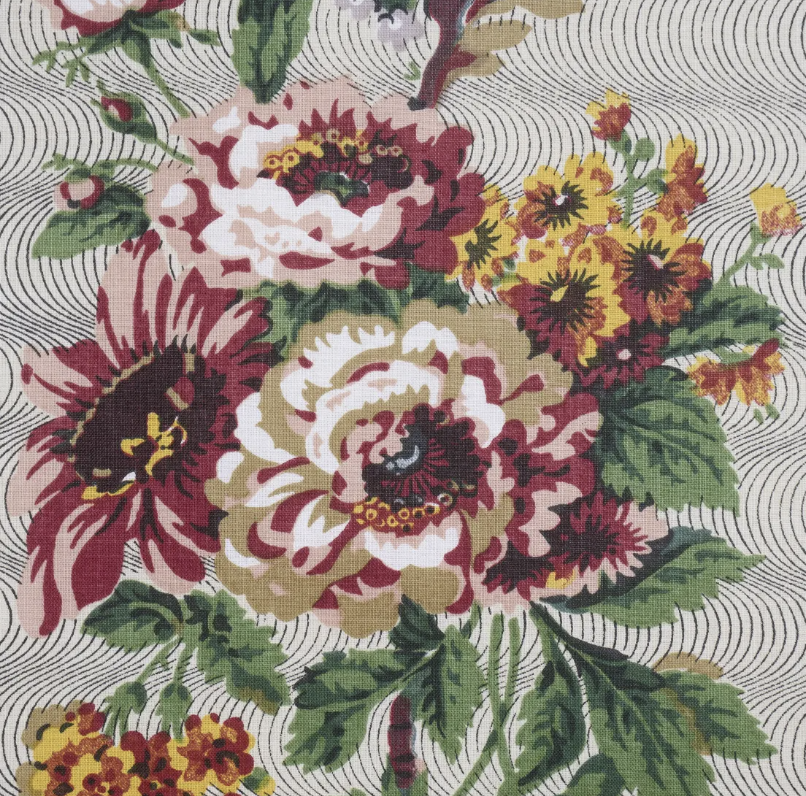 This is a chic hand printed floral pattern. Width- 54" Repeat- 39.25" Content- Cotton If...