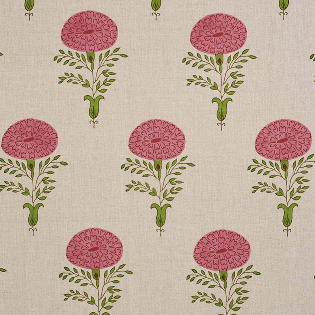 A happy, graphic ode to the marigold, one of Molly’s favorite flowers, and a symbol of passion and creativity on the Subcontinent. Hand-block printed in India by master craftsmen.