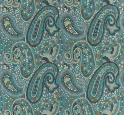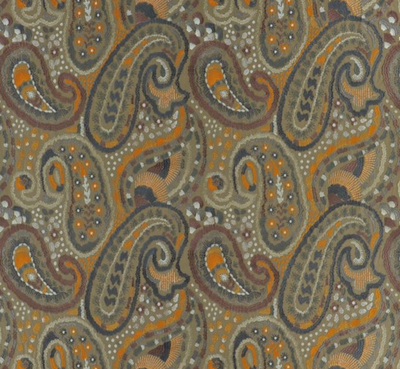 A classic paisley pattern updated via delicate embroidery detail in an earthy and neutral color palette, for a vintage look.