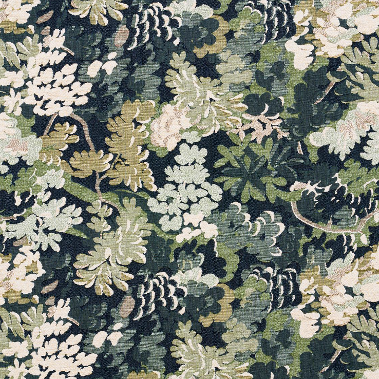 Inspired by an antique French screen. Verdure Tapestry in peacock is a lush mid-scale foliage...