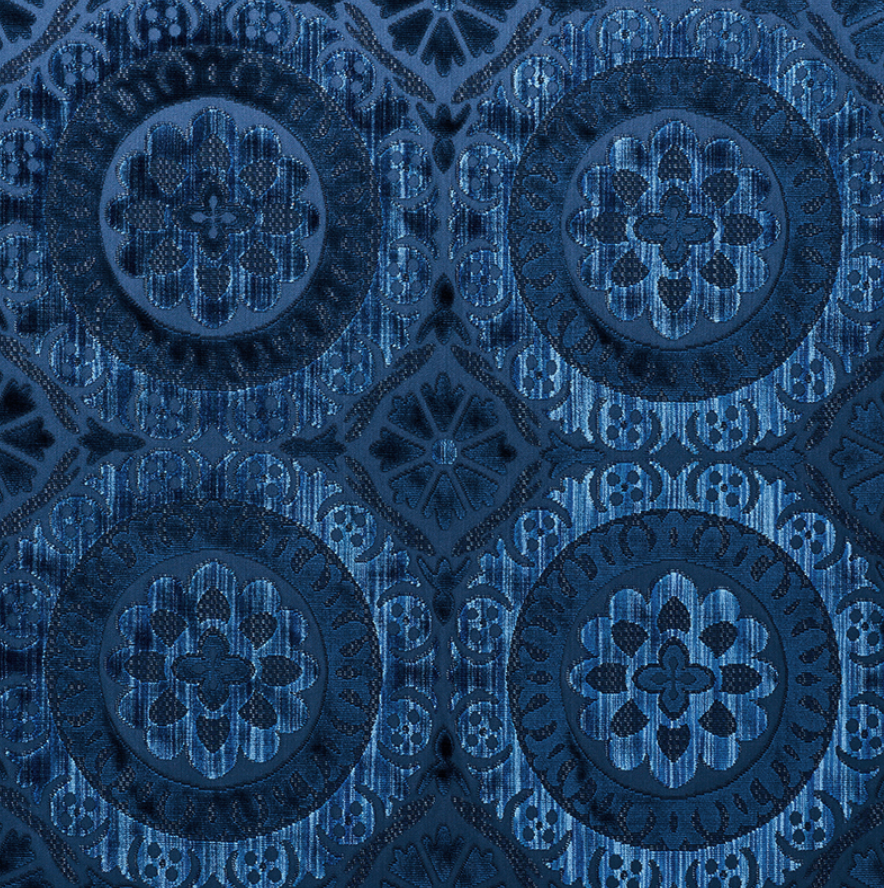A suzani motif is rendered in velvet with a combination of piles and loops on...