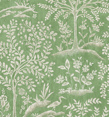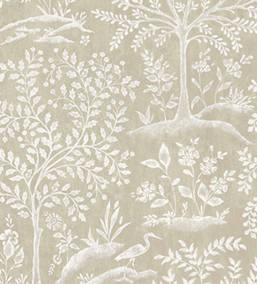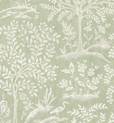 This Enchanted Woodland scenes wallpaper is a beautiful design of trees, plants , animals and birds. They are all illustrated in painterly silhouettes on colored grounds.