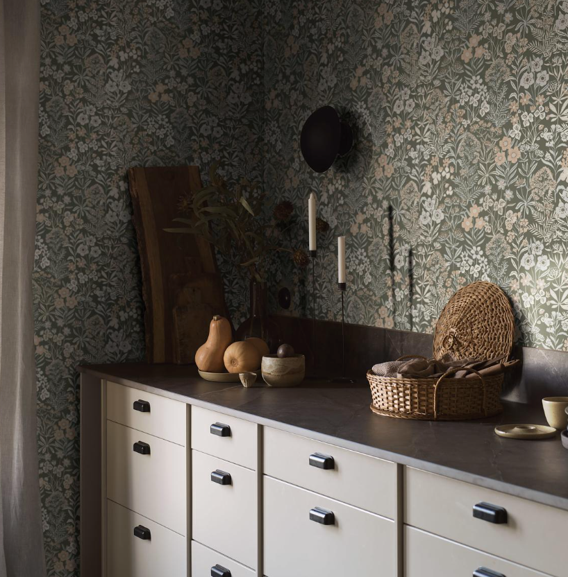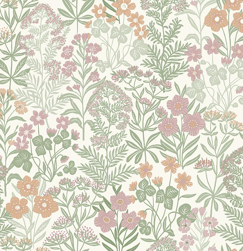 An enchanting allover pattern that is dense with stylized flowers and foliage, Äng in spruce brings a delightful Scandinavian meadow into the home. This lush mid-scale wallpaper is a versatile, appealing floral design with endless charm and a fresh, modern look.