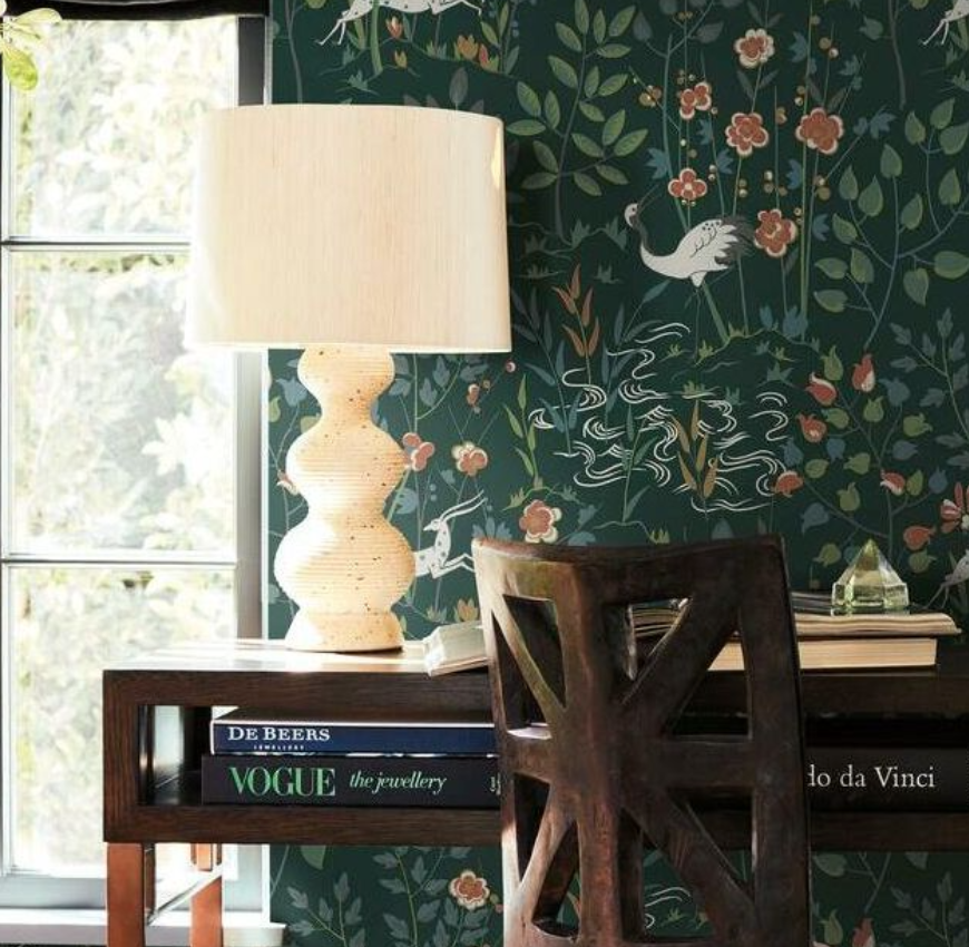 Cosmopolitan pattern Aspen’s deer and botanical motif is a mainstay of modern Art Deco design which is as timeless a it is beautiful.