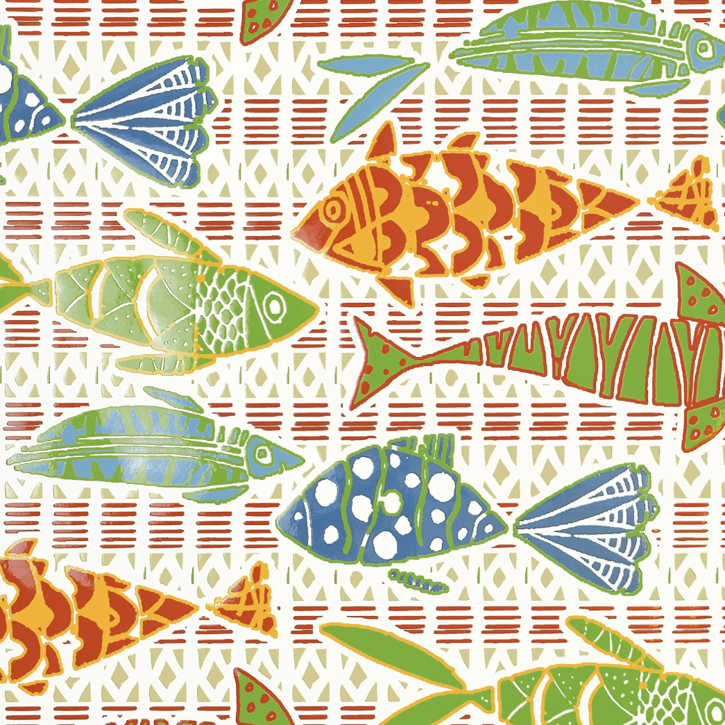 Transform any space into a poolside paradise with our Batik Fish Wallpaper. The vibrant, colorful fish swim playfully against a cool batik background, making it the perfect addition to any kids' bath or vacation home. Bring fun and life to your walls with our Batik Fish Wallpaper.