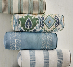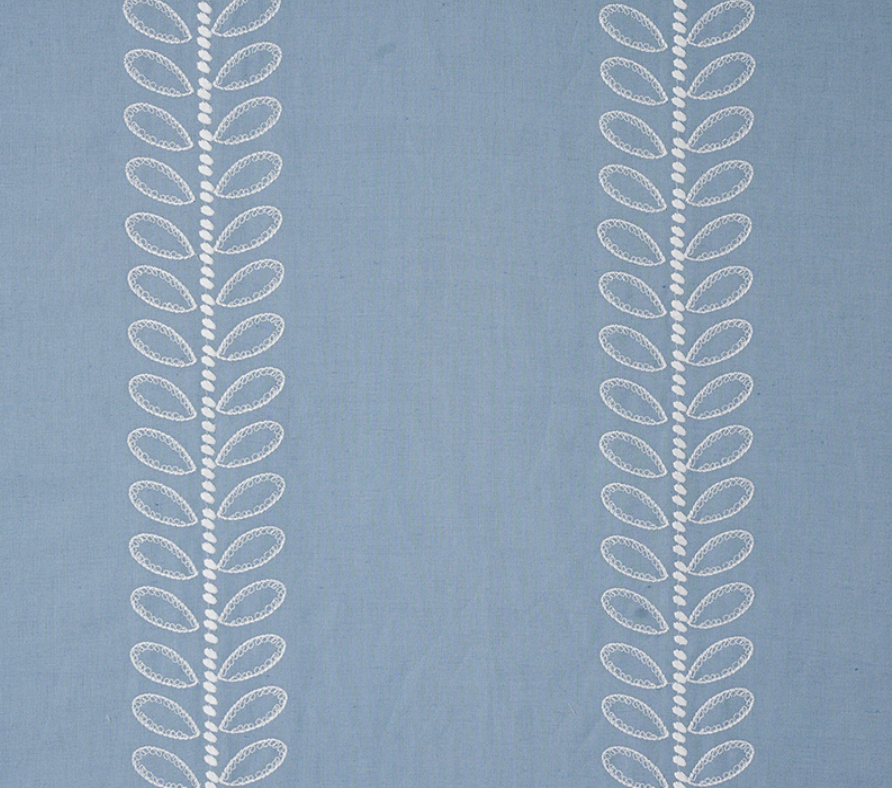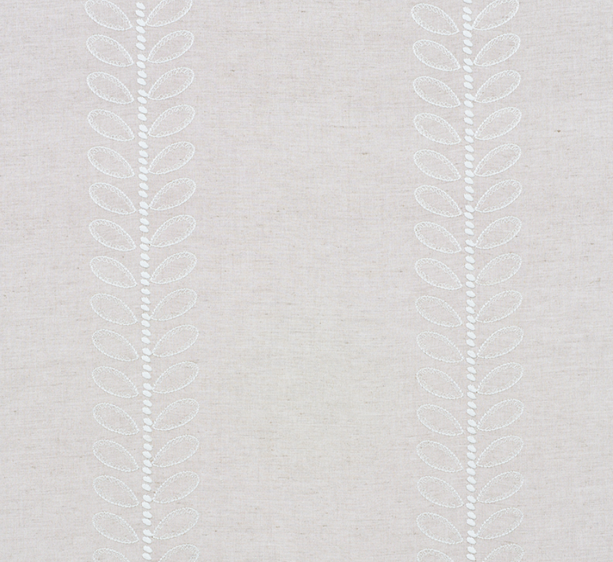 With a delicate embroidered leaf stripe that meanders up a lovely cotton-linen ground, Camille captures the simplicity of Scandinavian design.