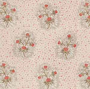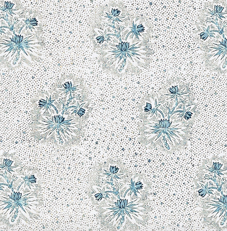 The sweet posy pattern and stippled ground of Cassis Floral offer a lovely dose of Gallic romance. Delicately scaled, this design mixes easily with other patterns.