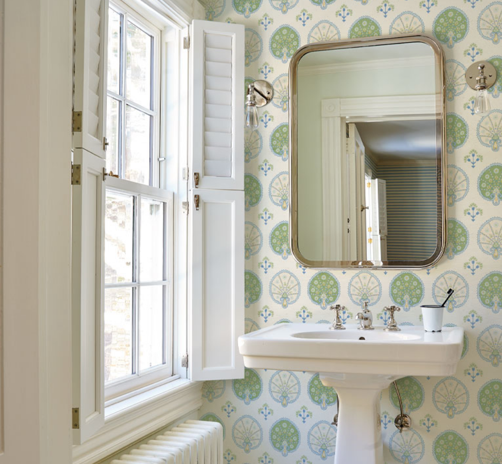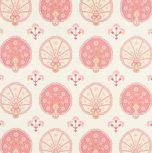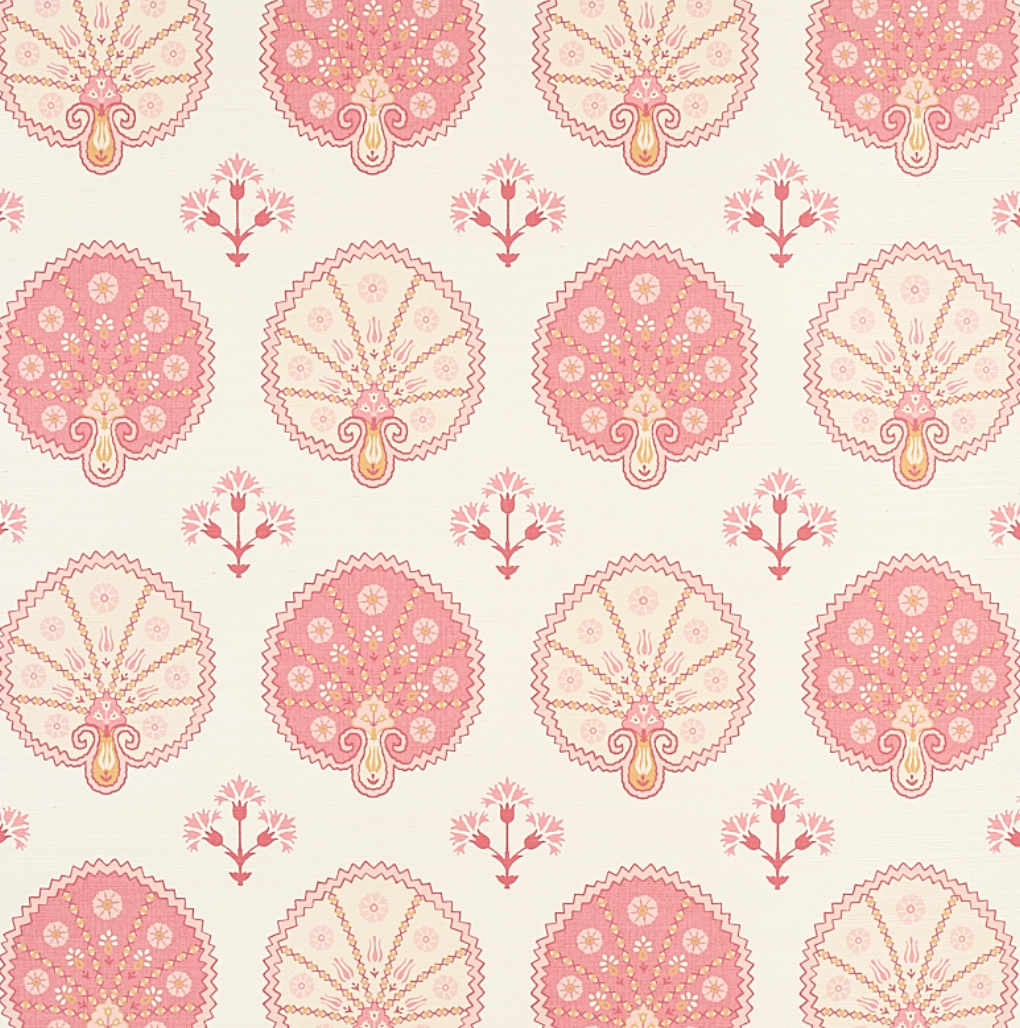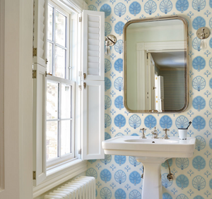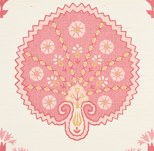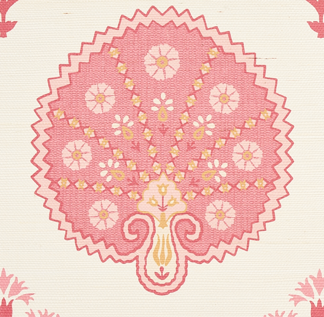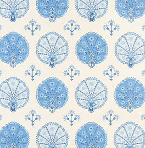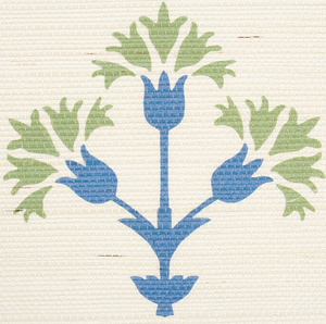 This intricate blue wallpaper design features traditional Ottoman fans and flowers with delicate flourishes. Printed on a sisal ground, the design has an incredible combination of texture and fine detail.