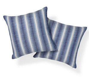 This indoor/outdoor pillow features Colada Stripe with a Knife Edge finish. It's hard to believe that natural linen can be weatherproof, but this stylish multi-color stripe resists fading, moisture, stains, and mildew. Pillow includes a polyfill insert and hidden zipper closure.