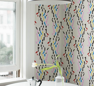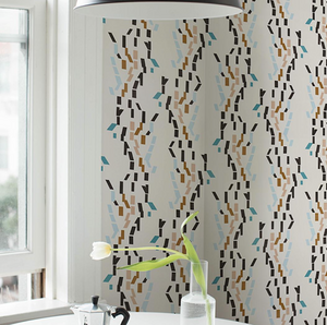 Confetti is a playful abstract stripe designs.  It alludes to falling water. A great  Schumacher pattern for many design styles .