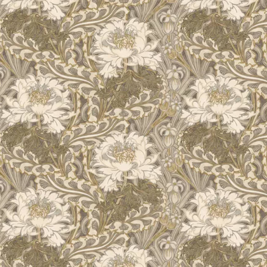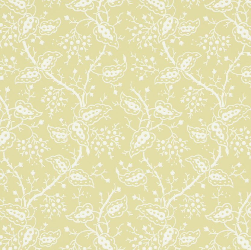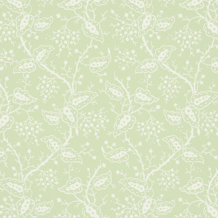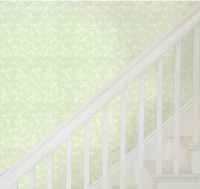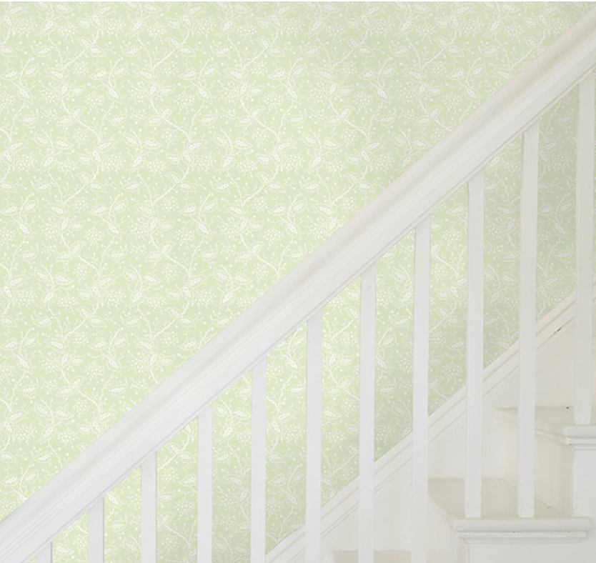 An antique hand-blocked paper inspired this climbing-vine botanical wall covering that’s surface- printed, so the ink is slightly raised for an extra hit of dimension.