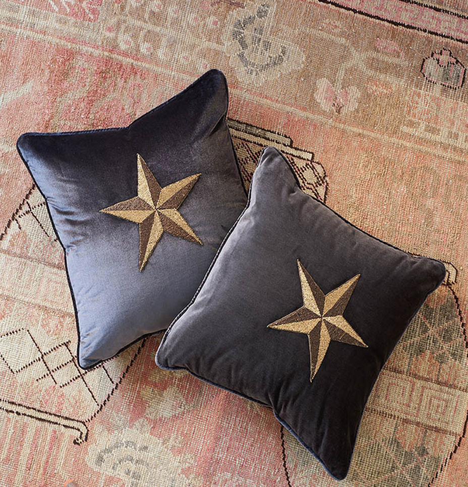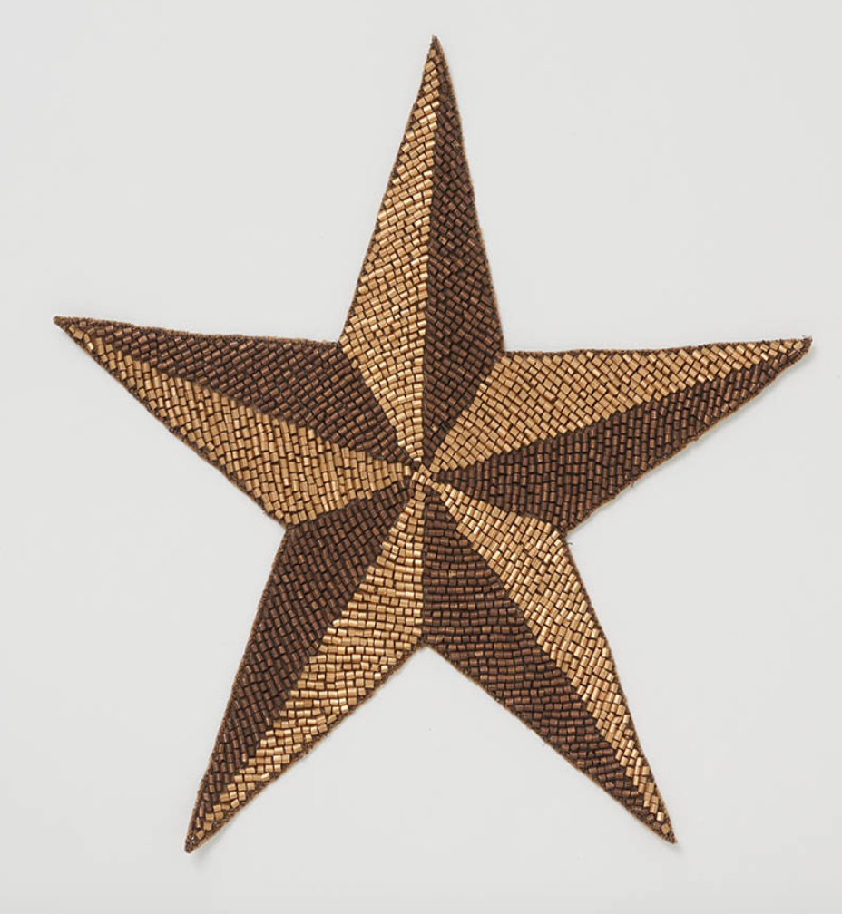 This hand-beaded, faceted star applique is made of bronze and gold beads with a sophisticated matte finish. It's a fabulous, eye-catching accent for a pillow or chair back.