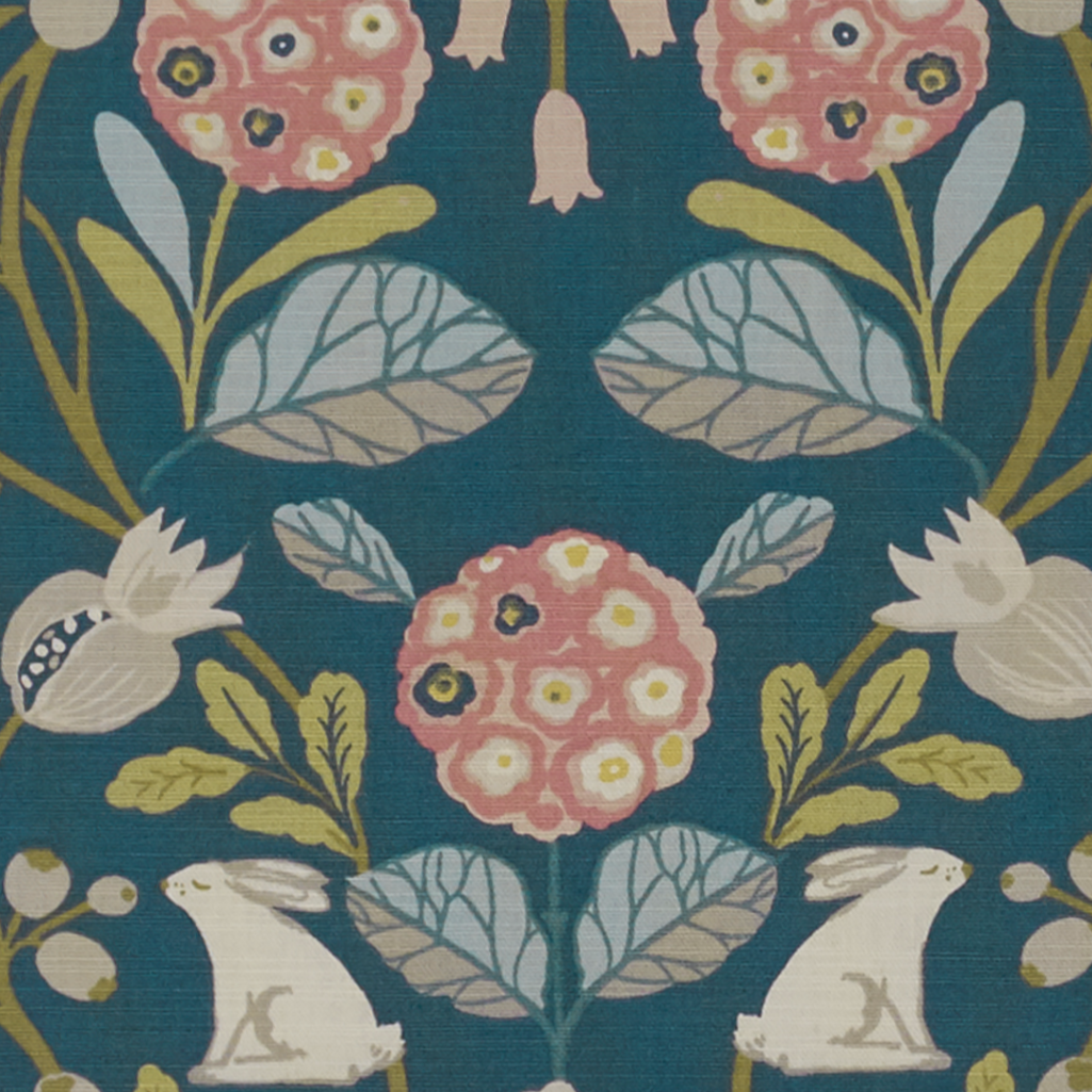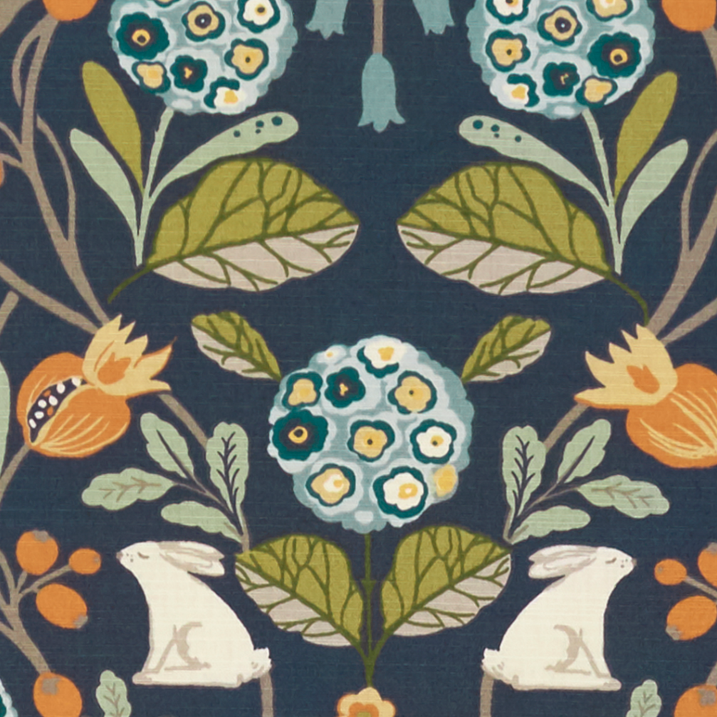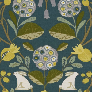 Cute folksy fabric with whimsical trees and bunny's.