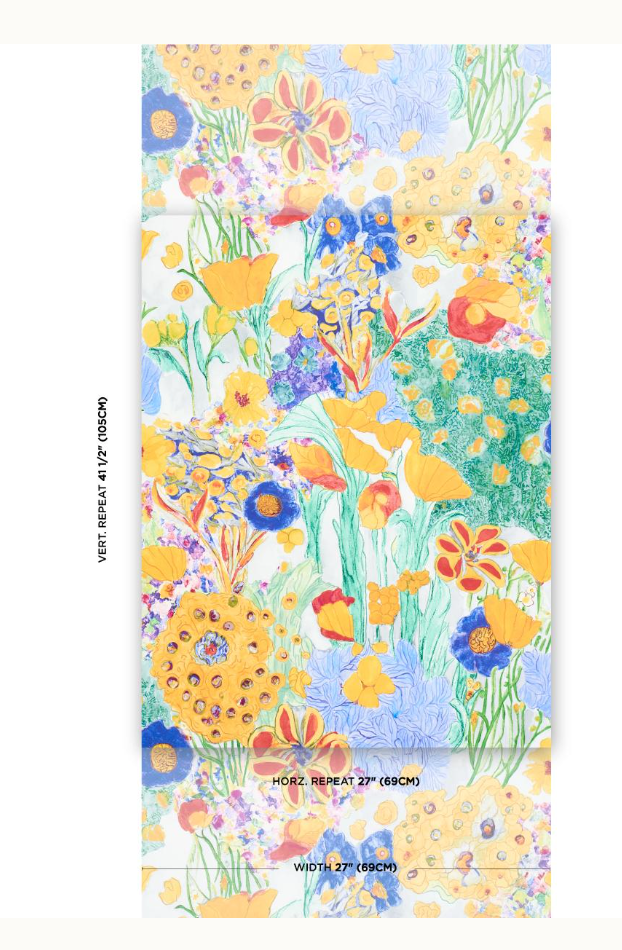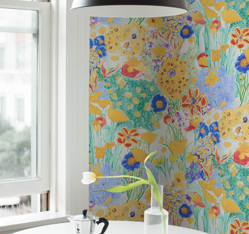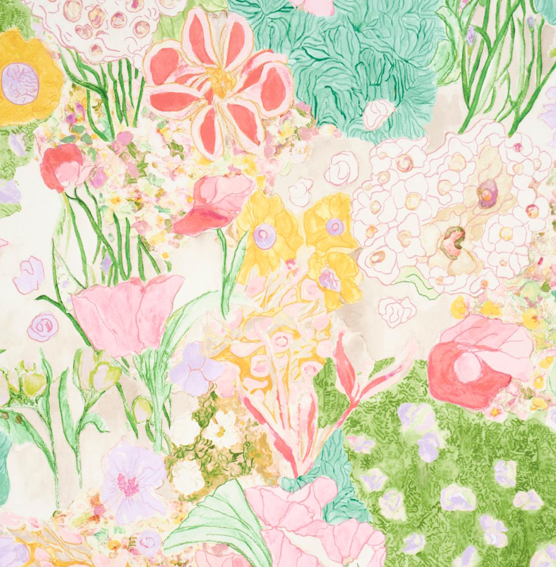 Frank's Garden is a colorful, larger than life botanical design. This imaginative, large-scale wallpaper features a dense, collage-like profusion of fanciful flora with an aquatic look and hand-painted aesthetic. It is the perfect way to add depth, dimension and a vibrant natural element to an expanse of wall.