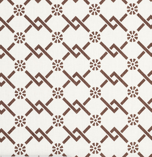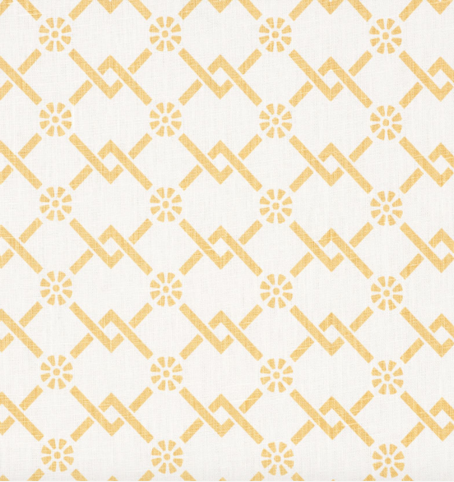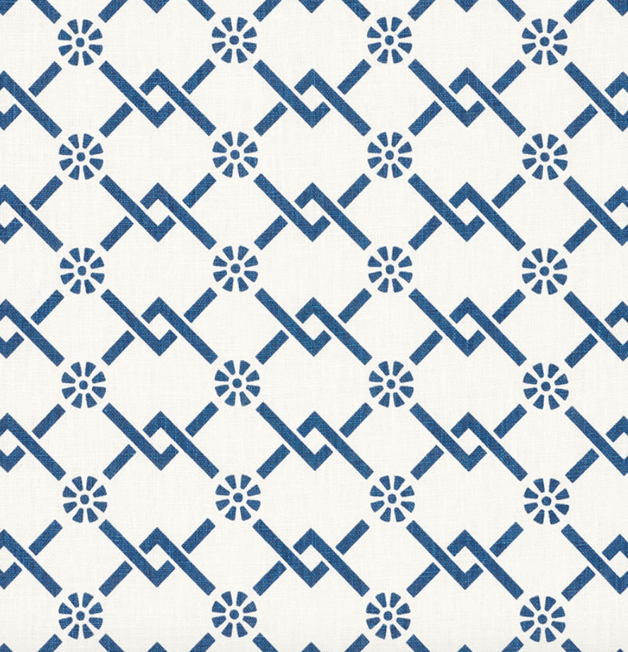 An interlacing lattice design with a charming floral accent, this versatile printed linen layers beautifully with other patterns.