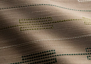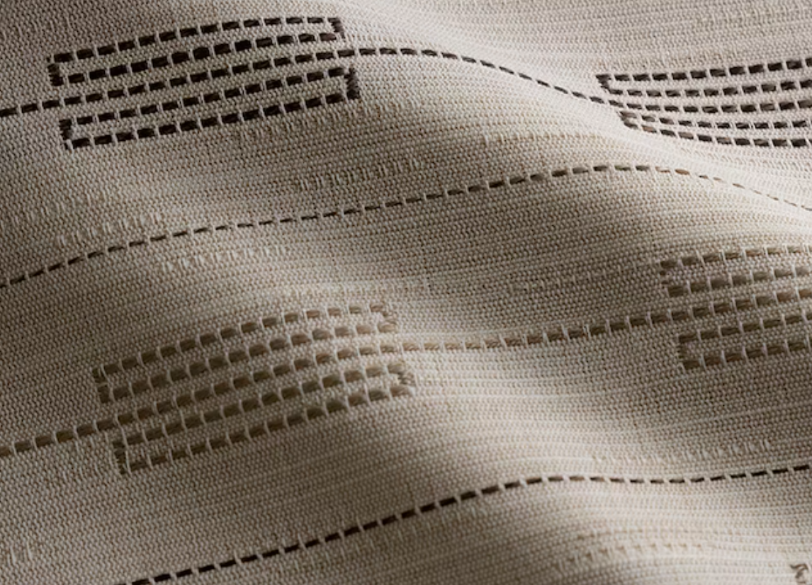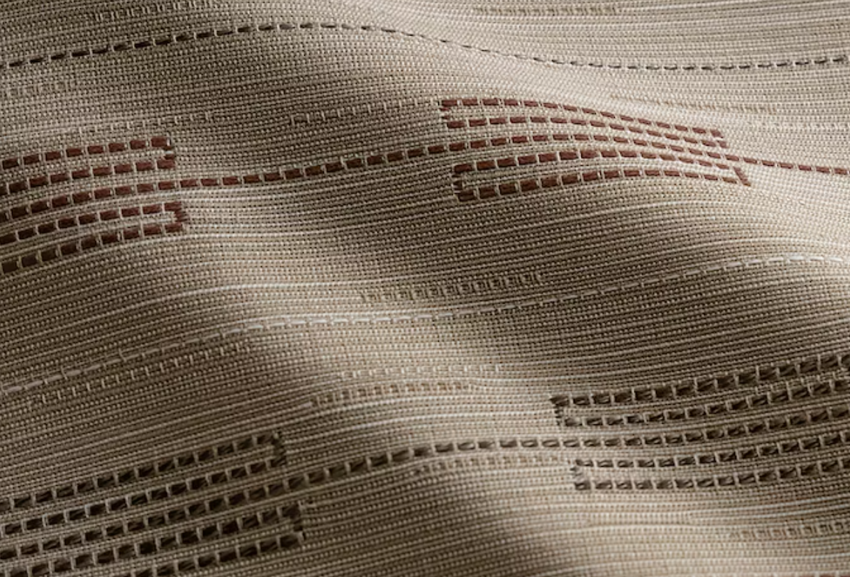 This indoor outdoor fabric has a cool geometric striped design.