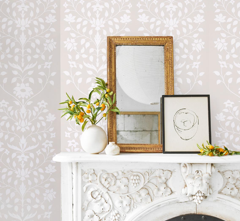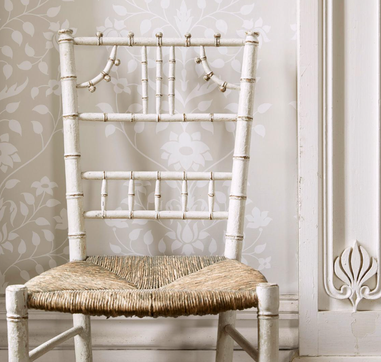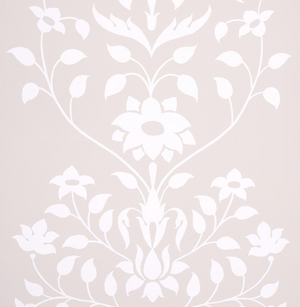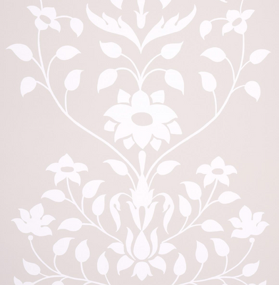 A wonderfully exotic stylized floral, Jaipur Mughal Flower wallpaper is  printed on flat fibrous paper, this exotic large-scale pattern has a lovely simplicity and interesting stripe effect.
