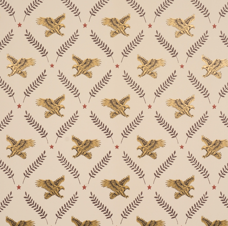 Inspired by a 1960s trellis wallpaper from our archive, Lolaire is an updated lattice design with a hand-drawn eagle motif adapted from New York City street art. Metallic accents lend an elegant gleam to this medium-scale pattern.