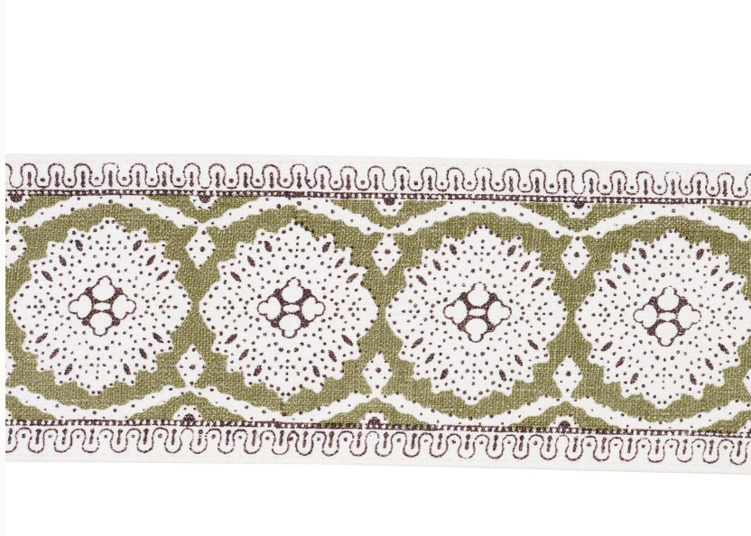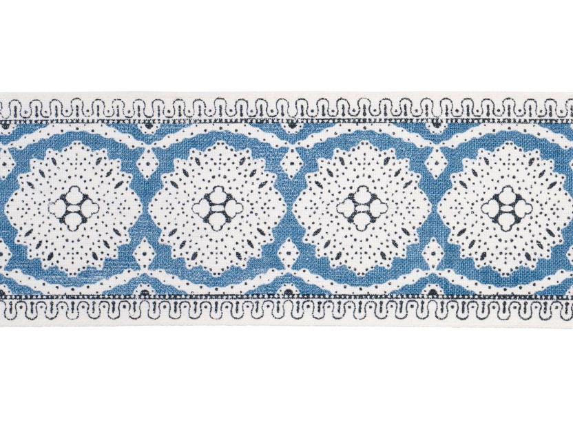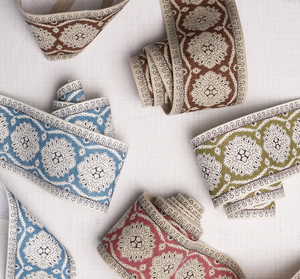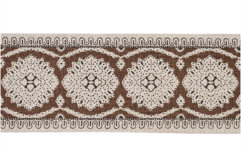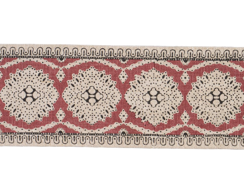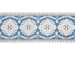 A delicate lace like design screen printed on a linen ground.