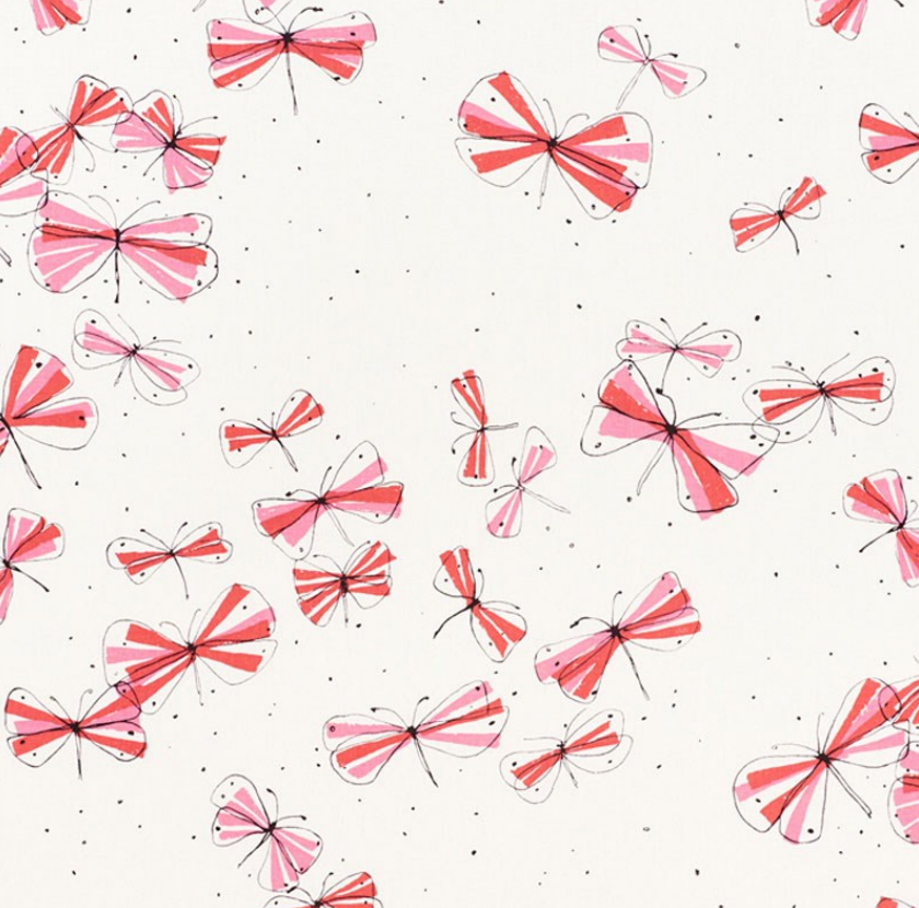 Alive and aflutter with stylized butterflies, this enchanting print on lightweight linen epitomizes Vera Neumann's carefree sensibility.