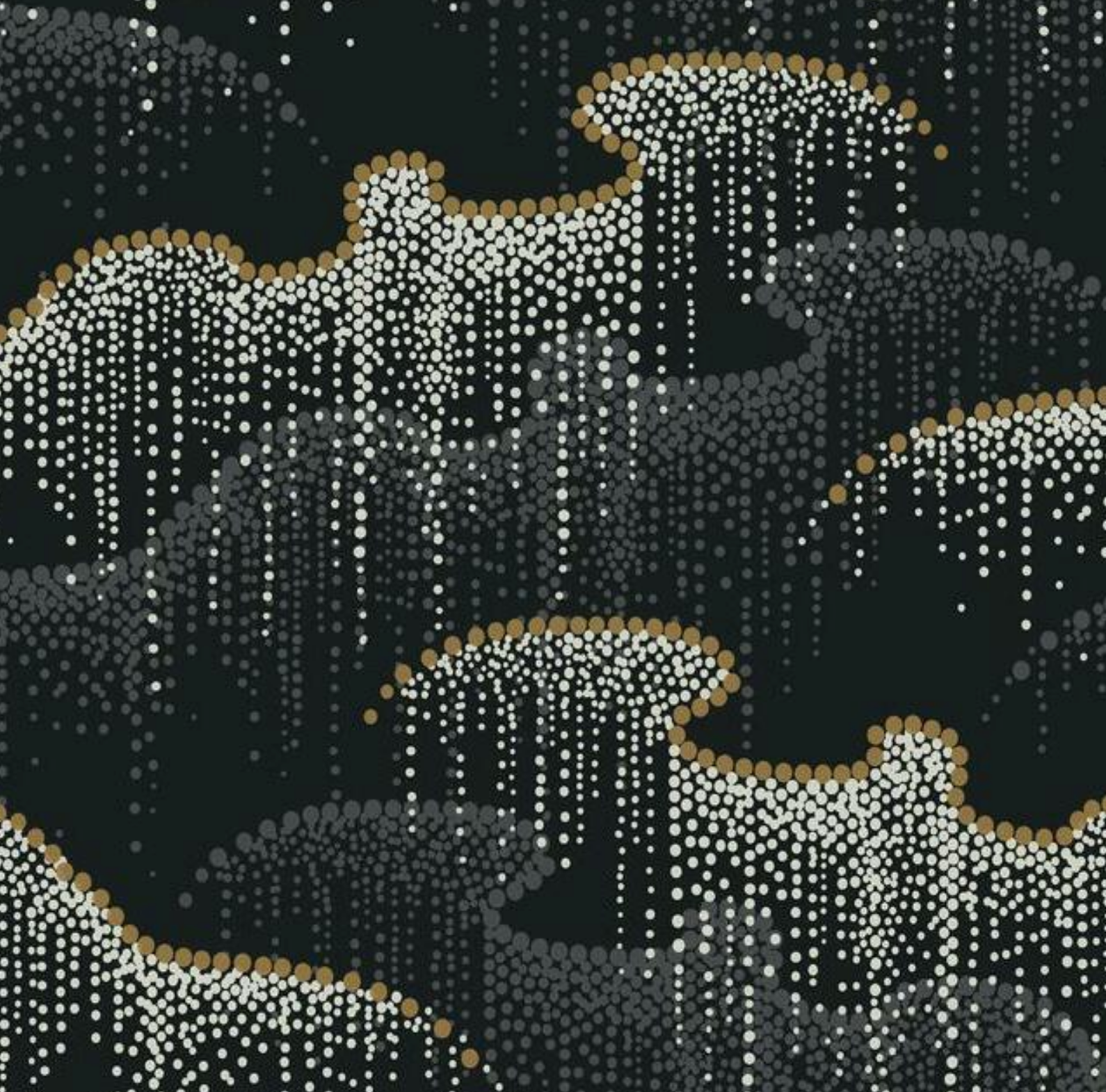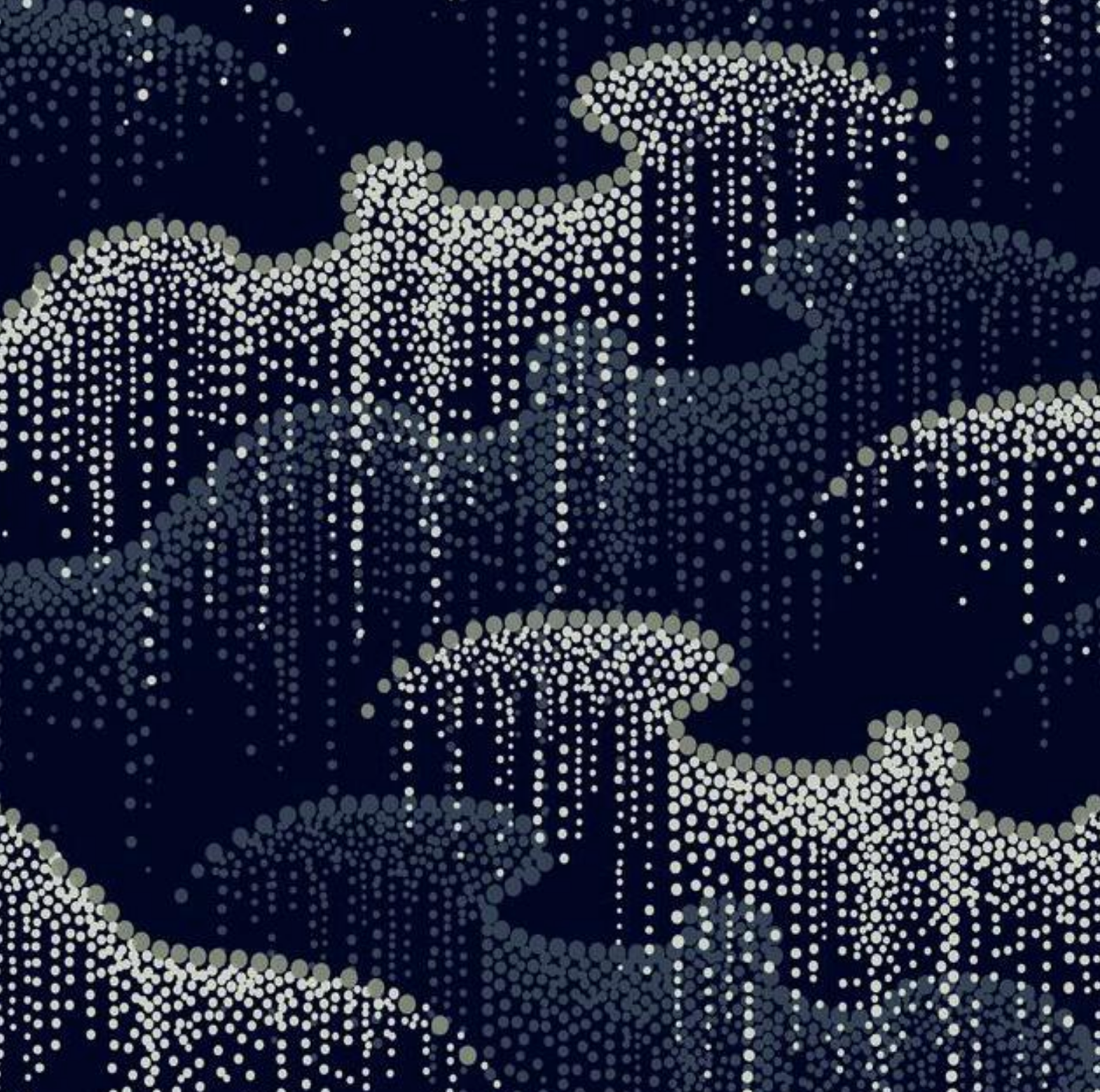 An aurora borealis of of shimmering cascades of metallic stars against an elegant firmament of color and pattern moonlight pearls.