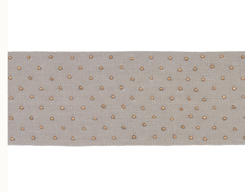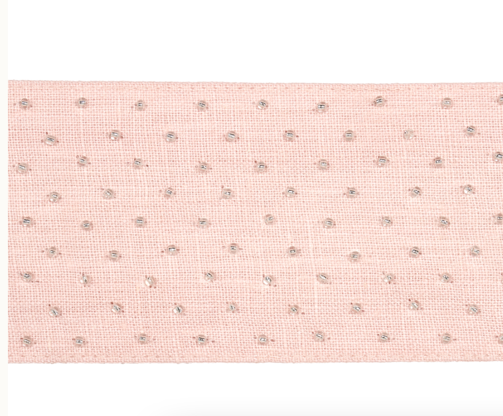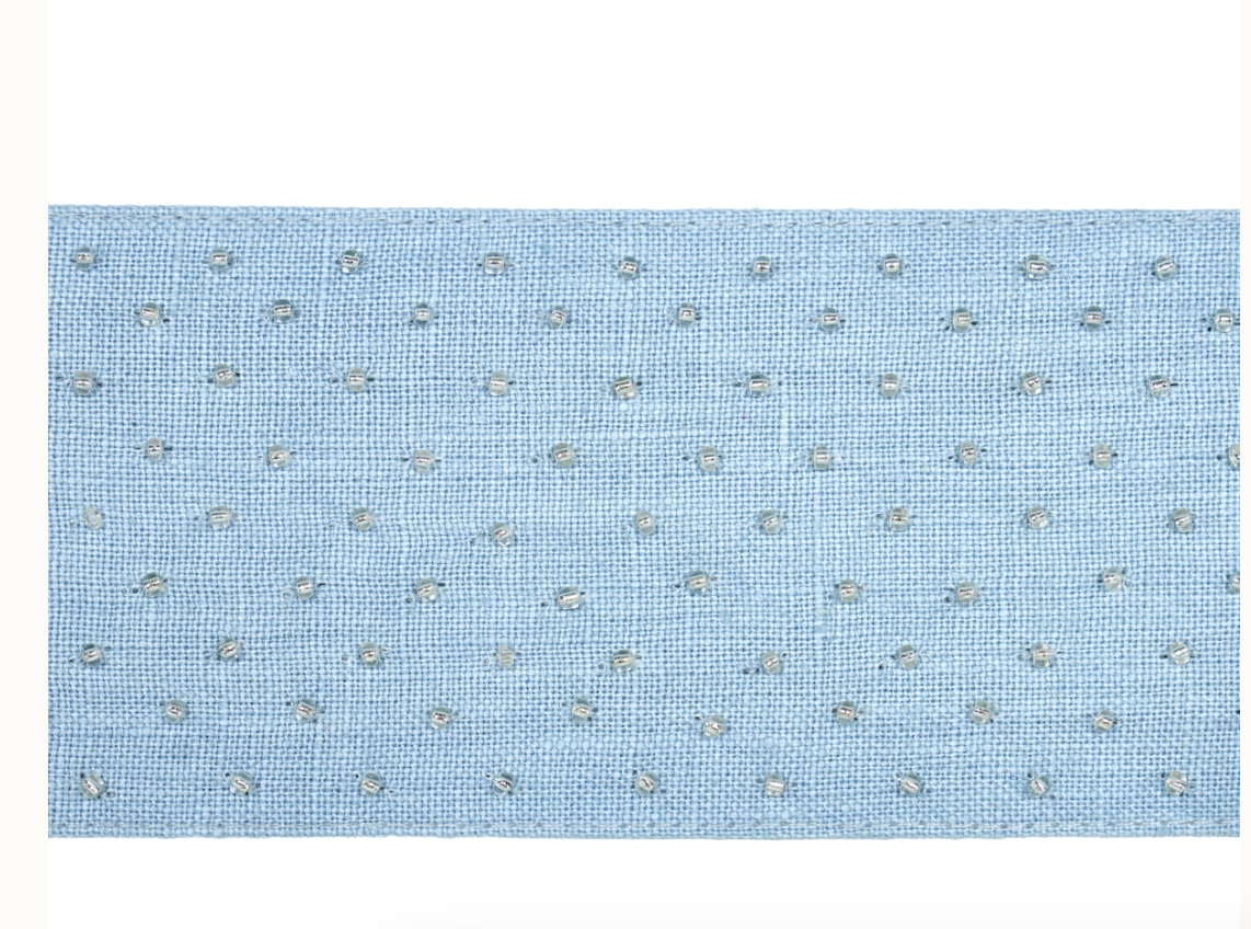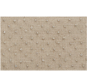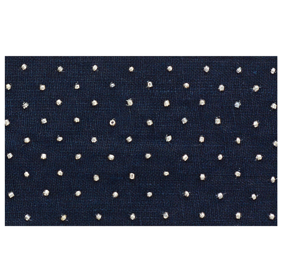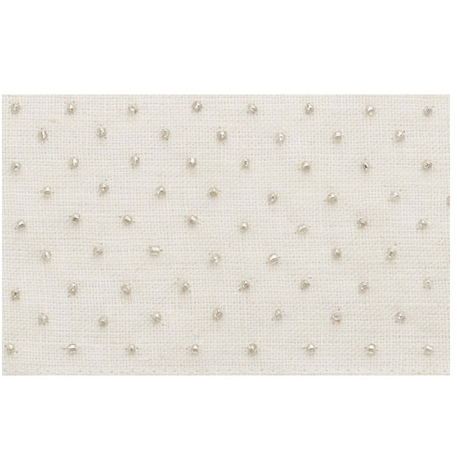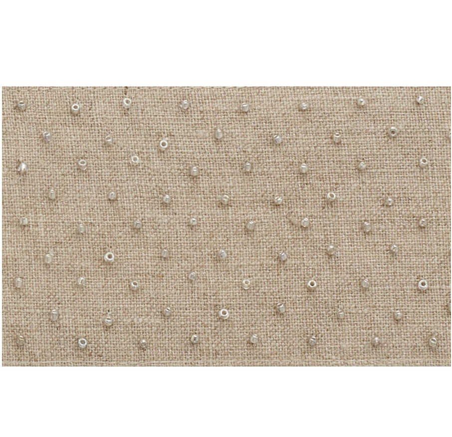 With shimmery, hand-stitched beads on a rustic linen ground, it’s the perfect balance between refined and relaxed.