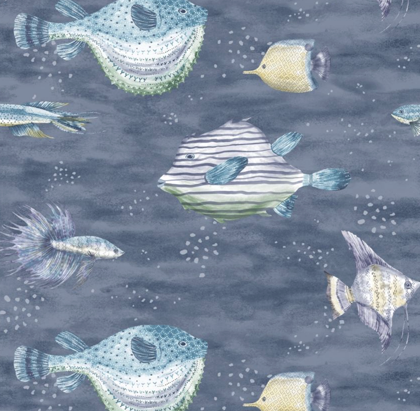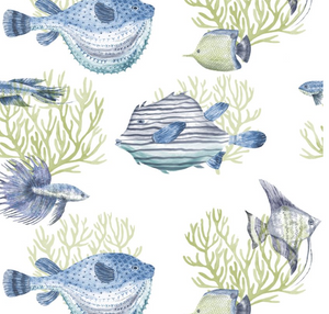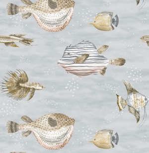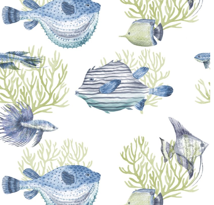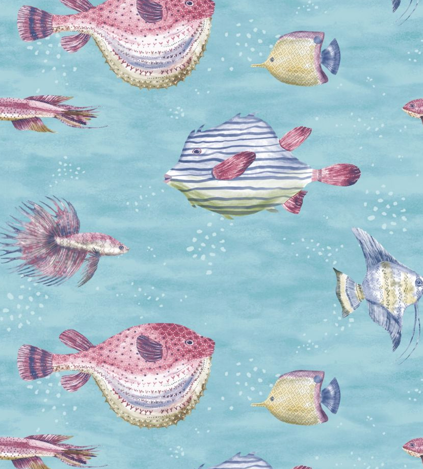 The enchanting Oceanna wallpaper features watercolor-style fish that will fit into your space swimmingly with a range of soft to bold colorways, perfect for any coastal haven.