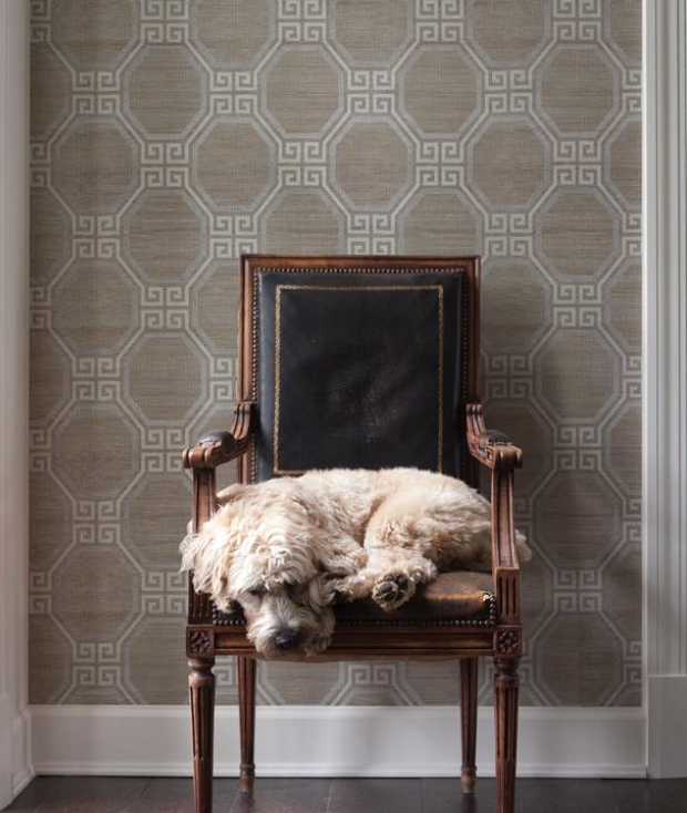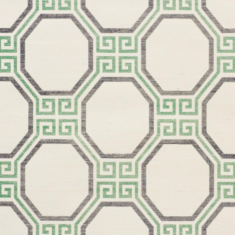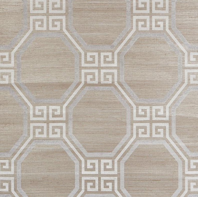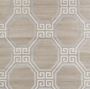 An eye-catching octagonal pattern accented with Greek keys, Octavia takes on a different look depending on whether it's printed on a sisal, paper weave or metallic ground.