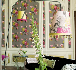 Elegantly painted floral bouquets in beautiful colors, reminiscent of 18th century hand-printed wallpaper patterns. Printed on a high quality 'easy to hang' non-woven ground.