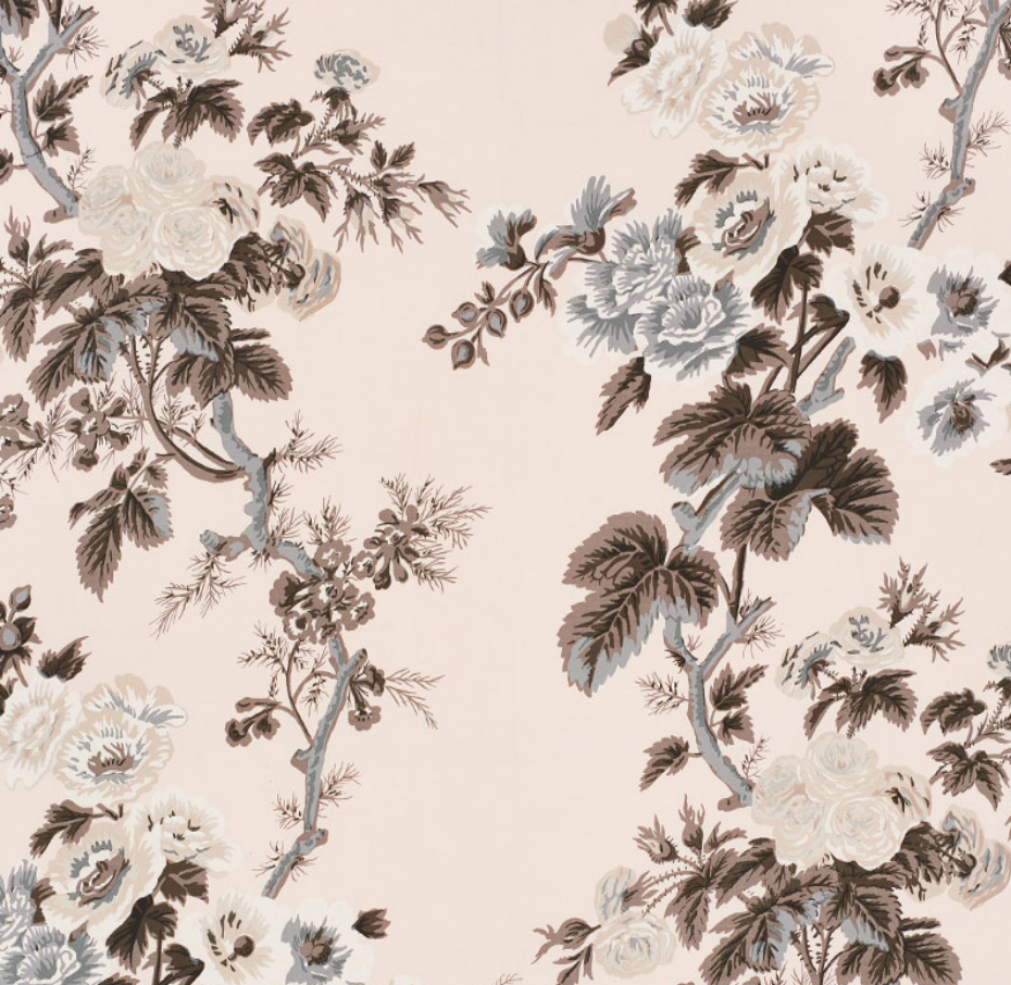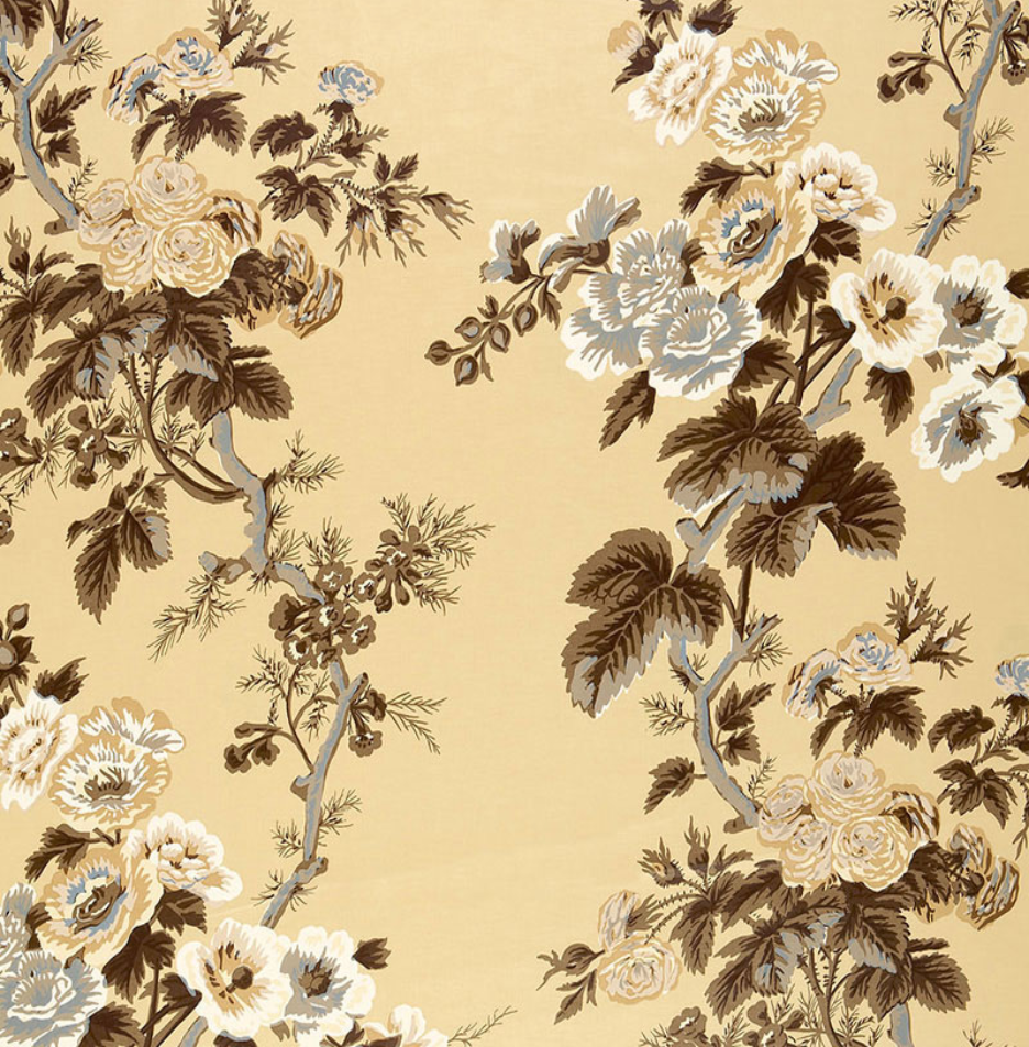 This chintz pattern was famously used by designer Albert Hadley for his client Nancy Pyne. It's one of our most sought-after designs. Also available as a wall-covering.