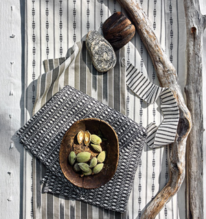 Woven in Germany, this striped tape is available in a range of versatile colors. The weft shows through the warp, giving it a soft look and handmade charm.