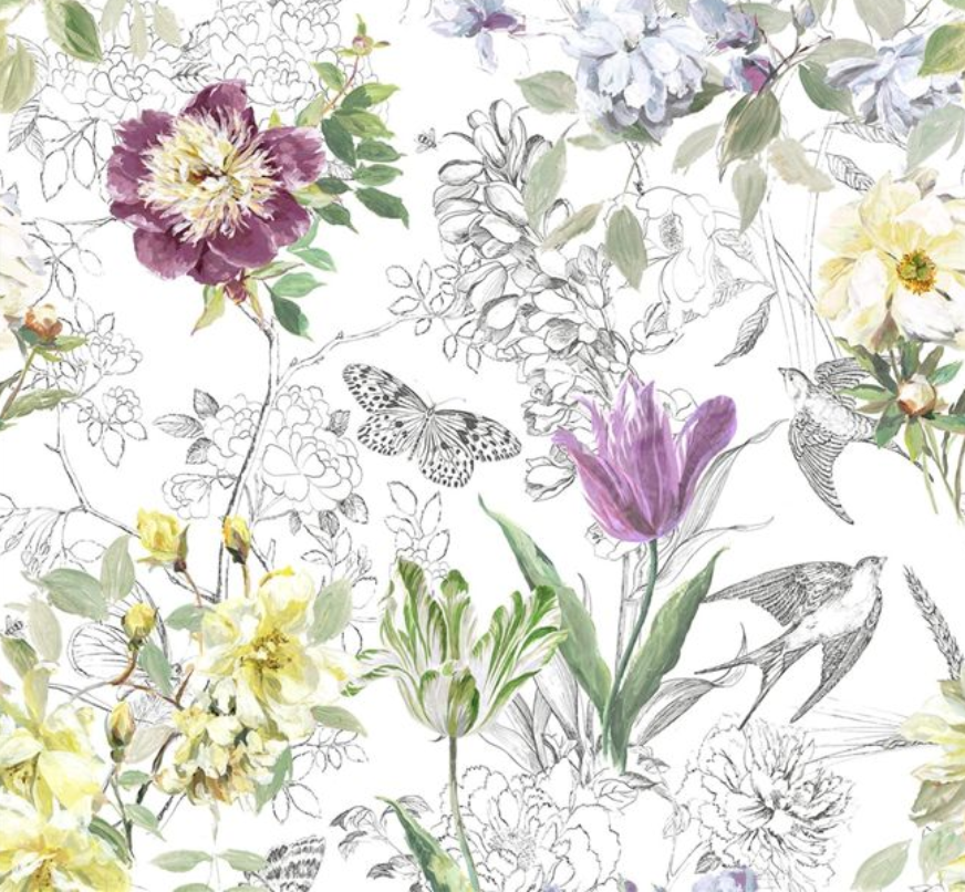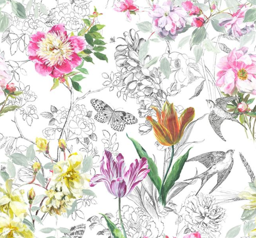 A beautifully drawn evocation of a summer cottage garden with a plethora of flowers and the occasional butterfly. This elegant floral fabric is printed on cool, crisp pure cotton and is perfect for curtains, blinds, cushions and bedcovers and durable enough for loose covers and upholstery. Available in two colorways.