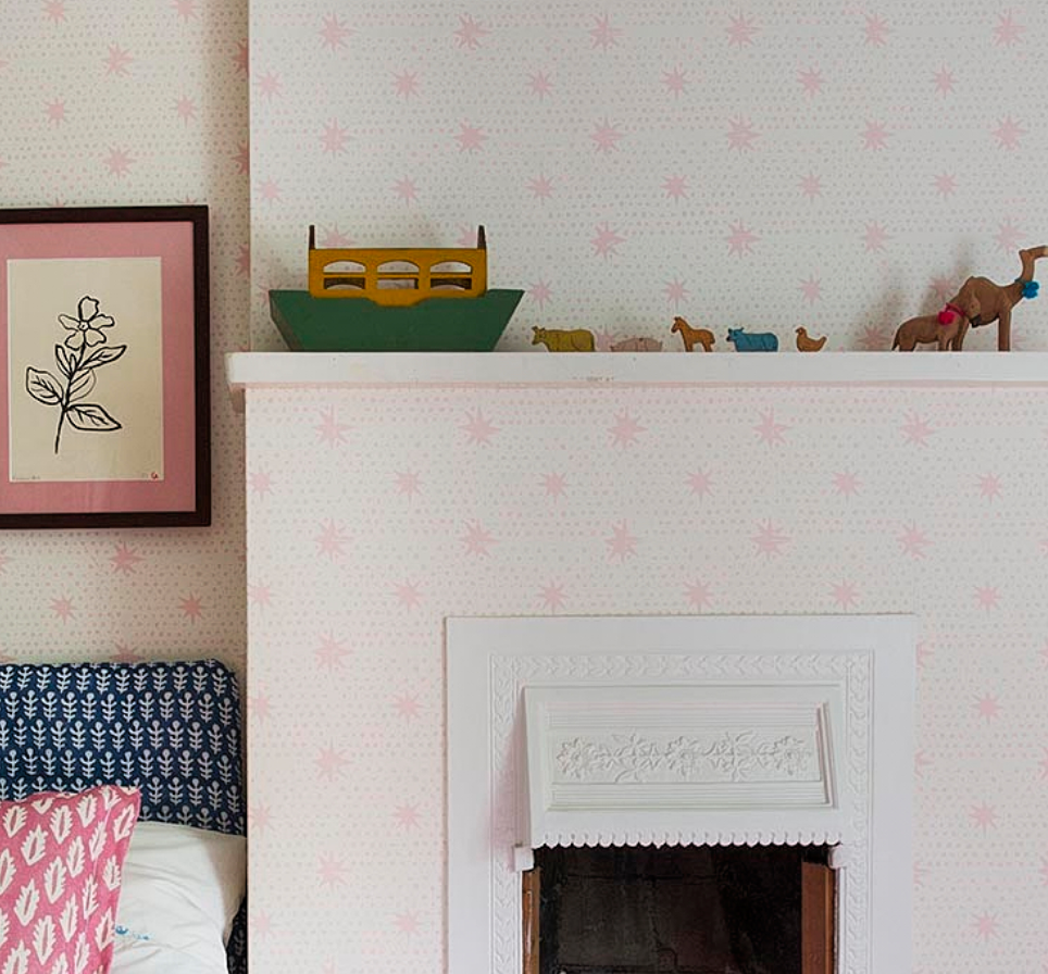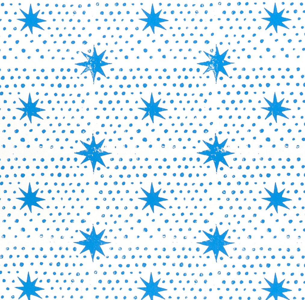 Inspired by the Renaissance artist Giotto, this enchanting dot and star recalls the heavens in a charming block-print style.