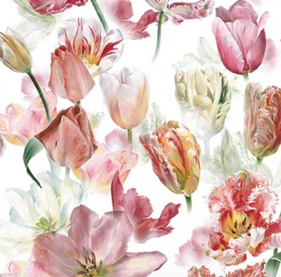 A profusion of perfect tulips punctuated by vibrant shades of fuchsia, rose and scarlet. Inspired by William Robinson's dynamic and experimental flower garden at Gravetye Manor.