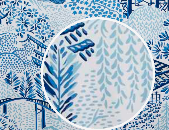 Filigree leaves create a crosshatch grid filled with botanicals on Rifle Paper Co.’s Estee Garden...