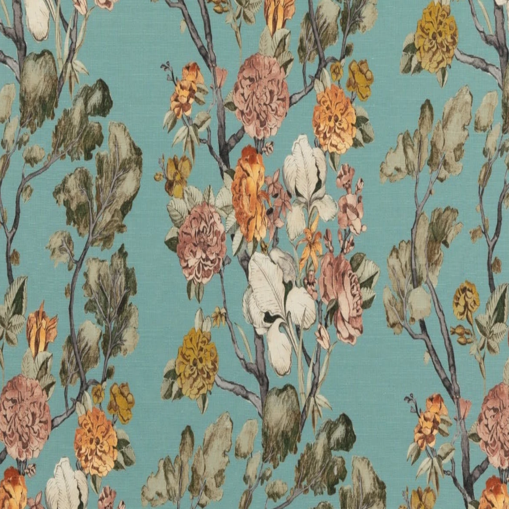 Modern country collection features this lovely floral pattern, featuring iris's , leaves and other botanicals.
