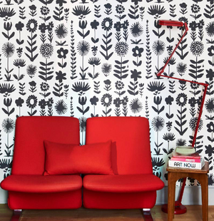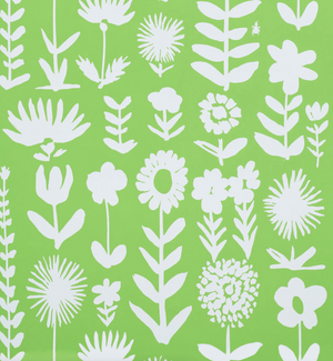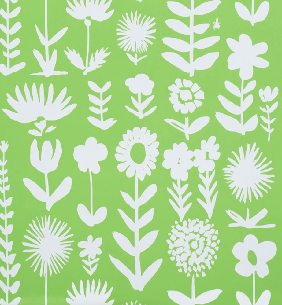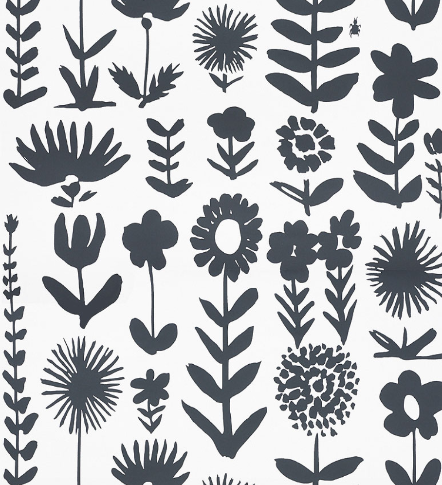 With its stylized flowers silhouetted against a solid background, this mod botanical pattern exemplifies Vera Neumann's affinity for nature and bold, graphic designs Also a fabric.