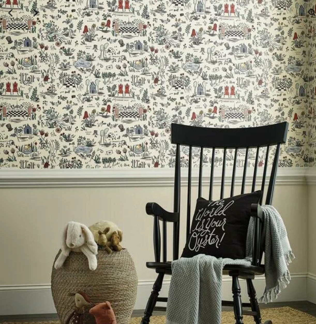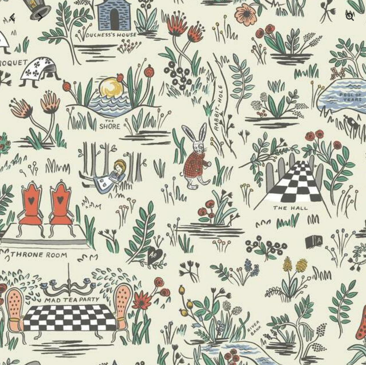 The Wonderland wallpaper was inspired by the classic tale, and is full of colorful, whimsical illustrations of some of the most-loved scenes and characters.