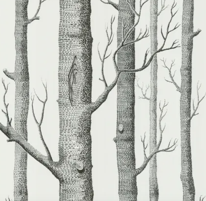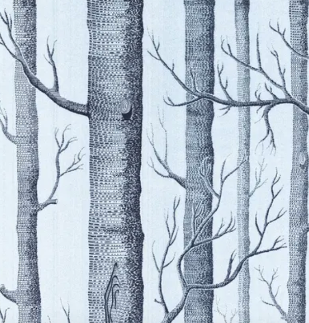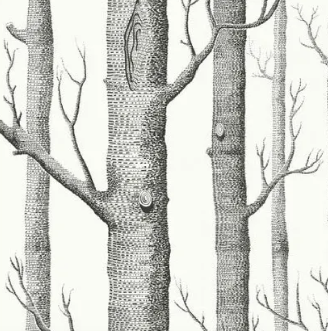 Sketches of trees in the woods. How cool would this be in the nursery! Combine with Stars wallpaper on the ceiling or on an adjacent wall.